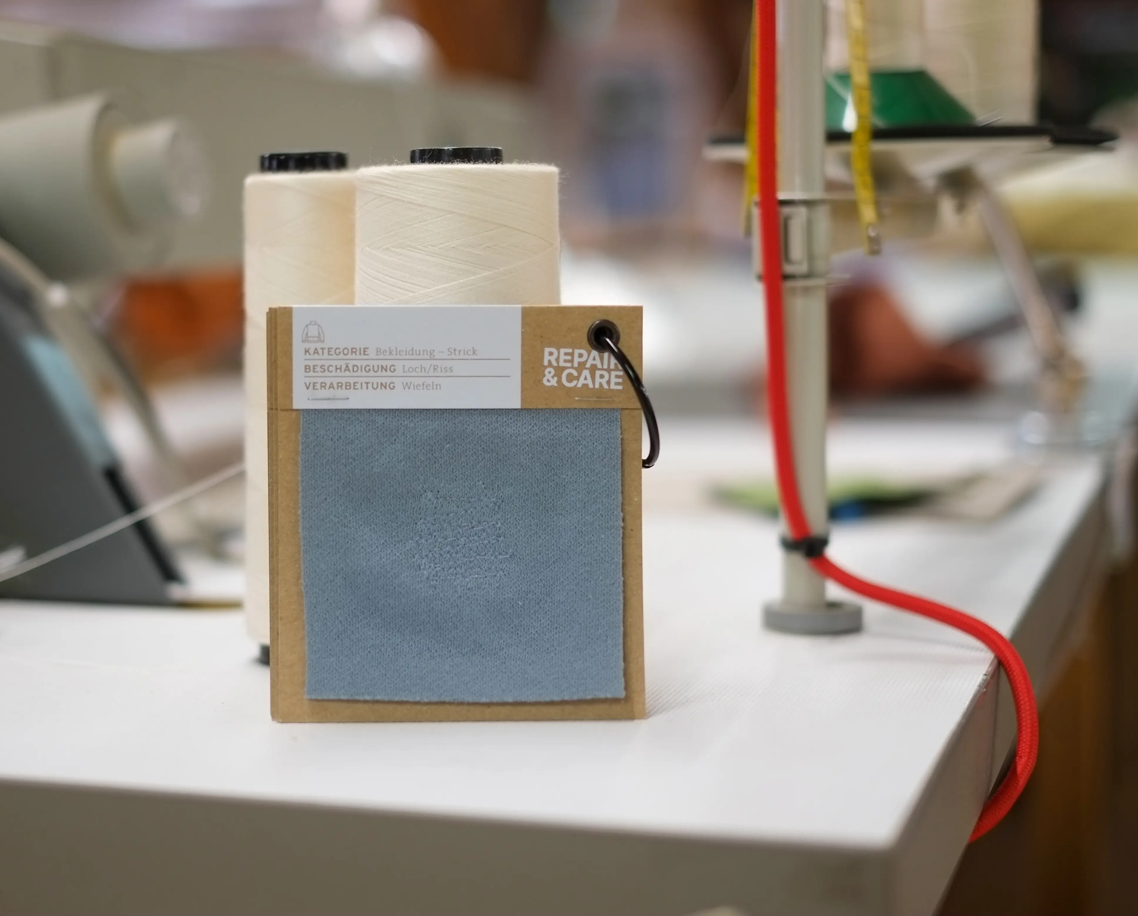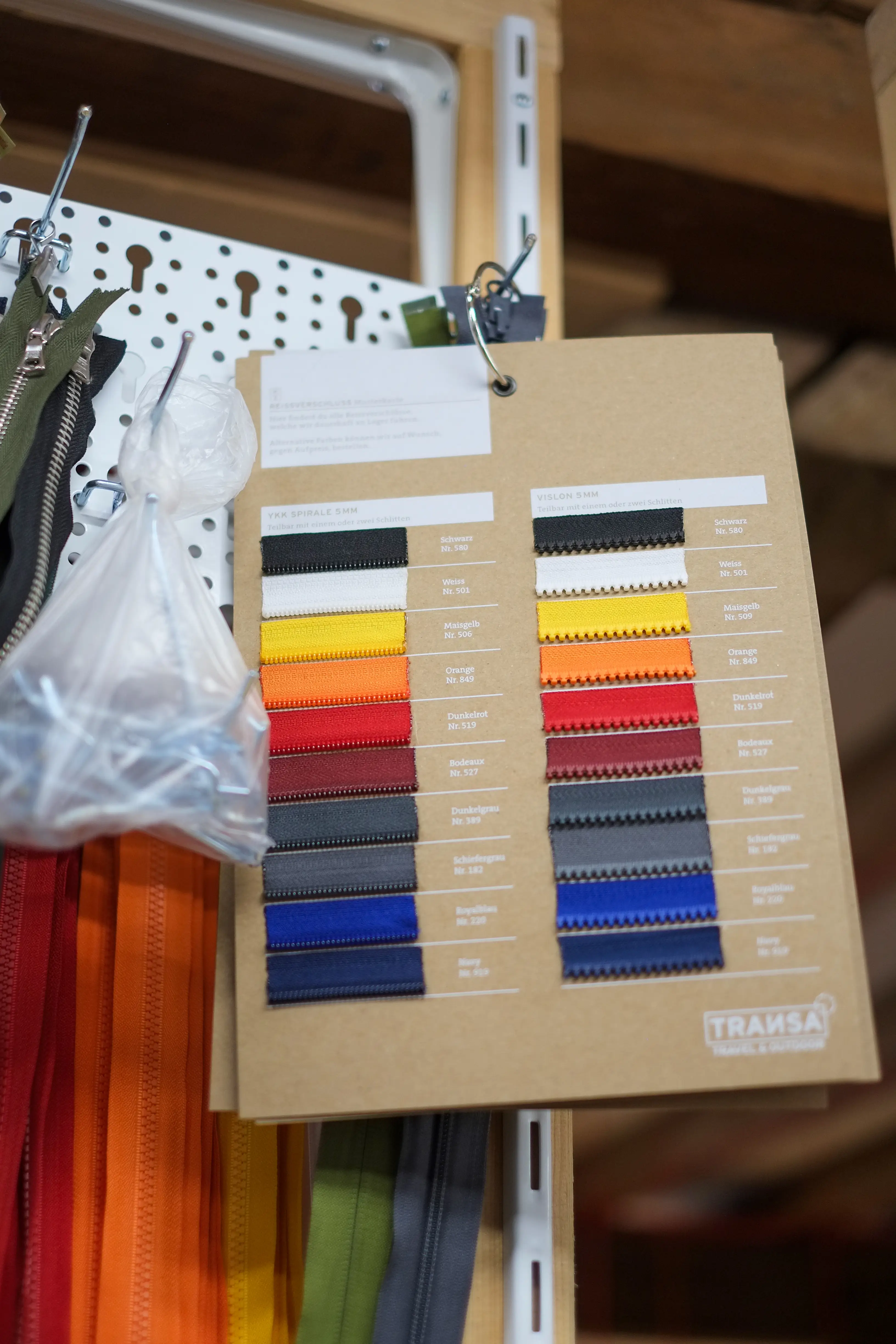 Umso mehr hat es mich gefreut, für ihre Reparatur-Werkstatt die Musterkarten der verschiedenen Reparaturmöglichkeiten und Reissverschlussfarben umzusetzen. Die Karten dienen dem Reparatur-Team wie auch Kundinnen und Kunden als visuelles Hilfsmittel und als Grundlage für eine unkomplizierte Kommunikation.